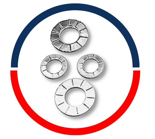La arandela de seguridad con resorte es la pieza más utilizada para evitar que se aflojen los componentes del conjunto. Aplica una mayor tensión de perno por unidad de torque aplicado y ofrece protección contra el aflojamiento resultante de la corrosión y la vibración. La arandela de seguridad se utiliza generalmente en una aplicación que implica vibración y posible deslizamiento de los sujetadores. Se utiliza comúnmente en industrias de automoción, aeronáutica y marina. También se puede utilizar en electrodomésticos como unidades de tratamiento de aire y lavadoras de ropa. En lugar de fricción, la arandela Nord Lock asegura los pernos con tensión. Ya que crea un efecto de cuña debajo de la cabeza del perno o la tuerca para que el sistema no se afloje accidentalmente. El sistema contiene dientes radiales en el lado opuesto y un par de arandelas de bloqueo con levas en el lado opuesto. La clave es la disimilitud en los ángulos.